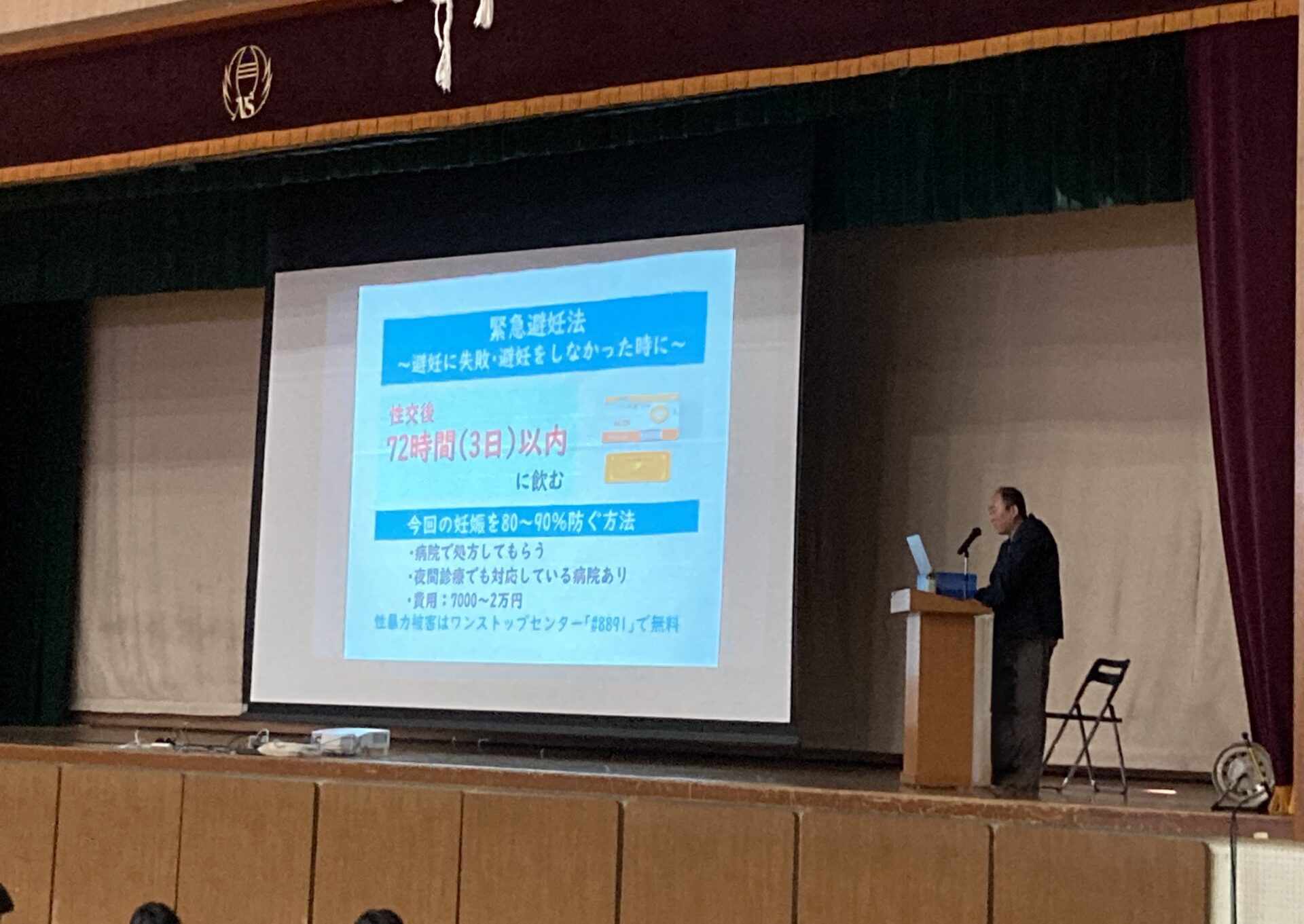 2. 恋愛と性の境界線 相手との距離感や「心身の同意」について、自分も相手も等しく尊重するためのコミュニケーションのあり方を共に考えました。講演中、真剣な眼差しでメモを取る生徒の皆様の姿が非常に印象的でした。性の悩みや知識は、一人で抱え込むと不安が大きくなるものです。当院の産婦人科外来では、こうした悩みを持つ若い世代の方々が、いつでも安心して相談できる「心強いサポーター」でありたいと考えております。生理の悩みや体の不調、避妊の相談など、どんな小さなことでも気軽に専門医を頼ってください。